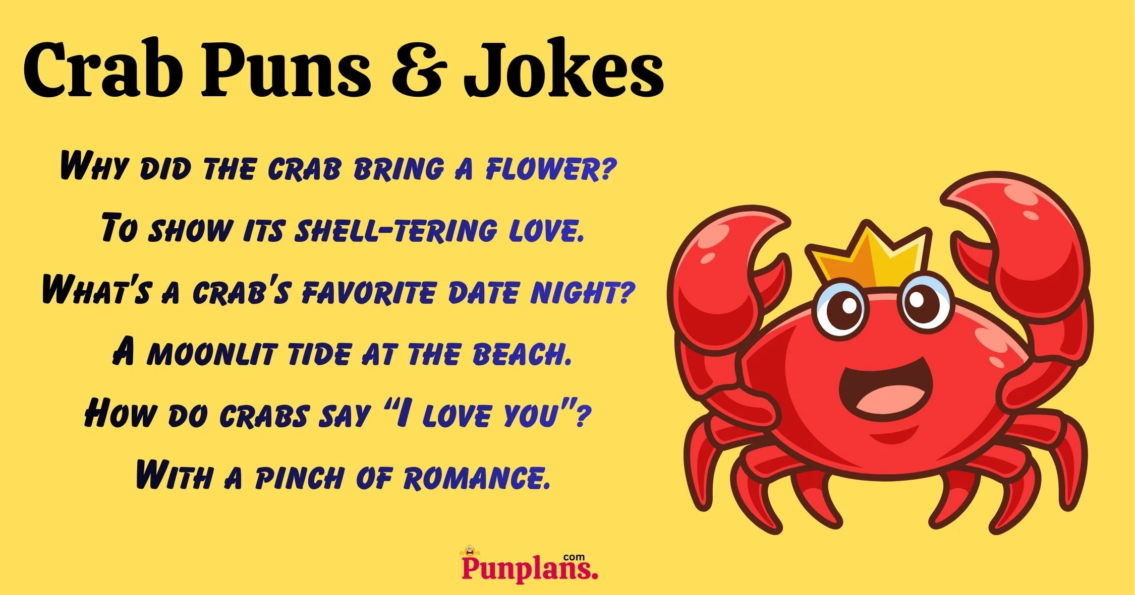 Yes! Try Halloween crab jokes like “What’s a crab’s favorite candy? Shell-oween chocolate!” or Valentine’s Day love puns.